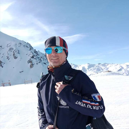 Depuis maintenant 19 ans, j’enseigne le parapente et réalise des vols biplaces. Mon activité s’est enrichie au fil des années : je suis également formateur de moniteurs au sein de l’ENSM (École Nationale des Sports de Montagne), et j’interviens bénévolement au sein de la commission formation de la Fédération Française de Vol Libre.